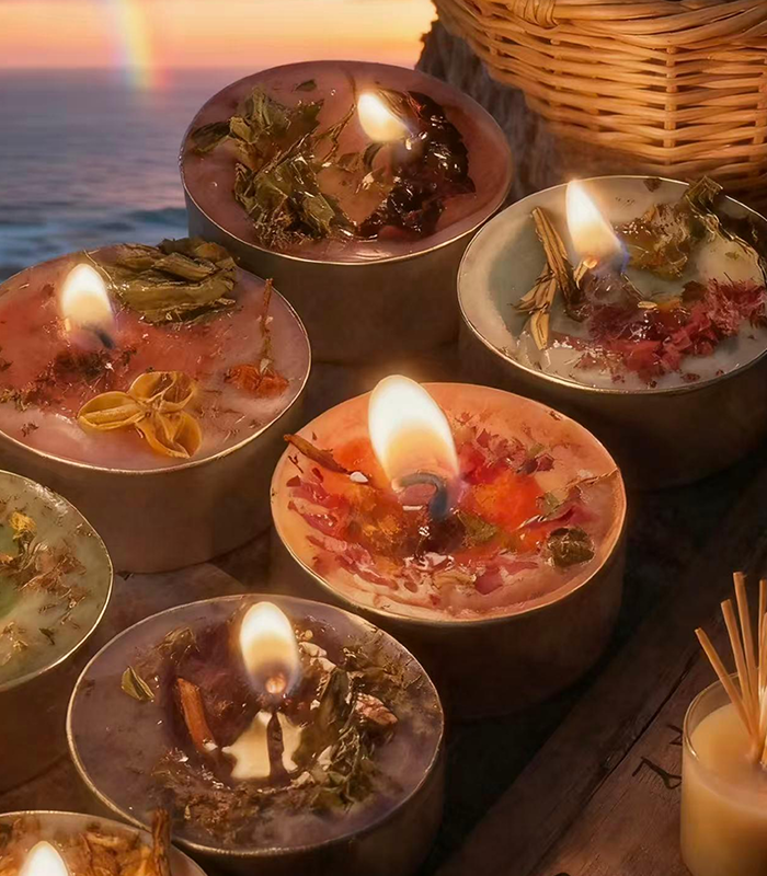 Mini soy candles + crystals · Colour-coded intentions · Gift-able & photogenic